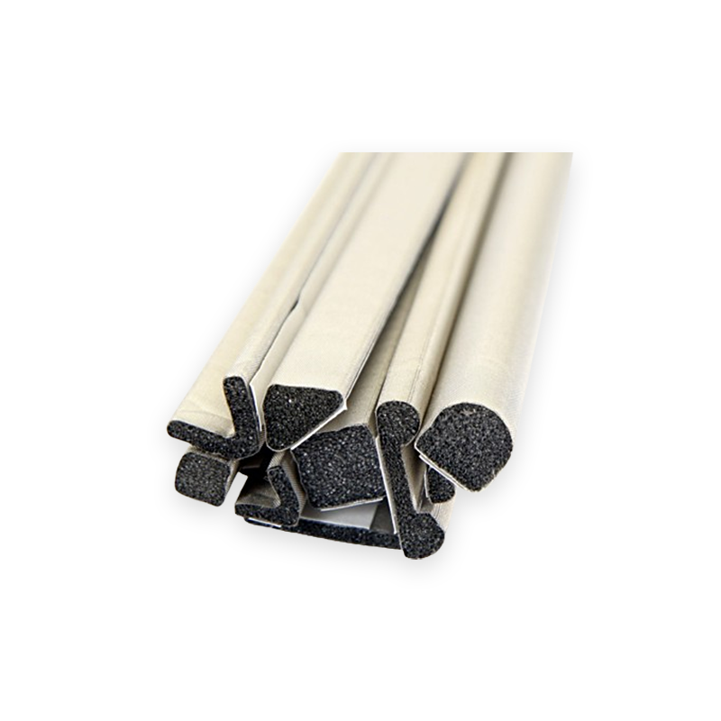 Perfiles de tela conductora con espuma y adhesivo PSA para fácil instalación.